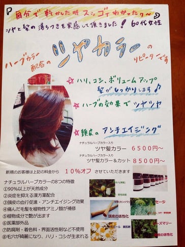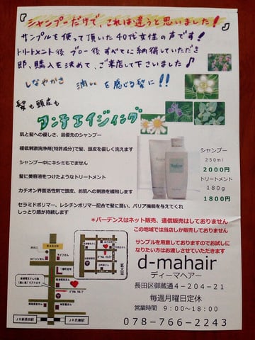 チラシの「シャンプーのサンプルご用意しております」を見てくださり、その日にサンプルを取りに来て頂きました。
