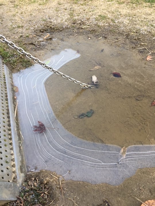 ワンコの散歩で行く公園の水たまりが凍っていましたよ!